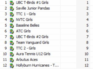 Screenshot Acceptance U12 Girls